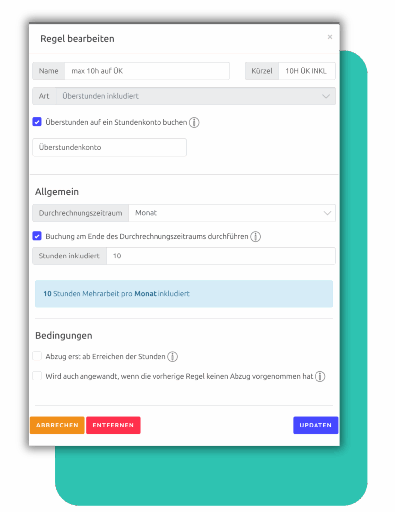 Einstellungen → Arbeitszeiterfassung → Stundenkonten → neue Regel