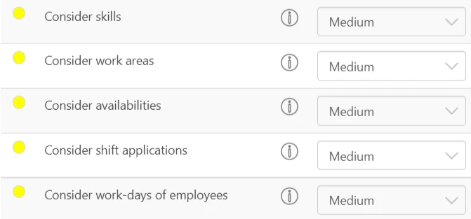 This criterion allows you to indicate how important it is to you that applications from employees be considered for individual shifts.
