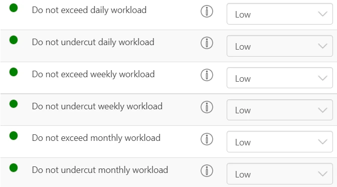 This criterion allows you to specify how relevant it is that the weekly target hours are not undercut.