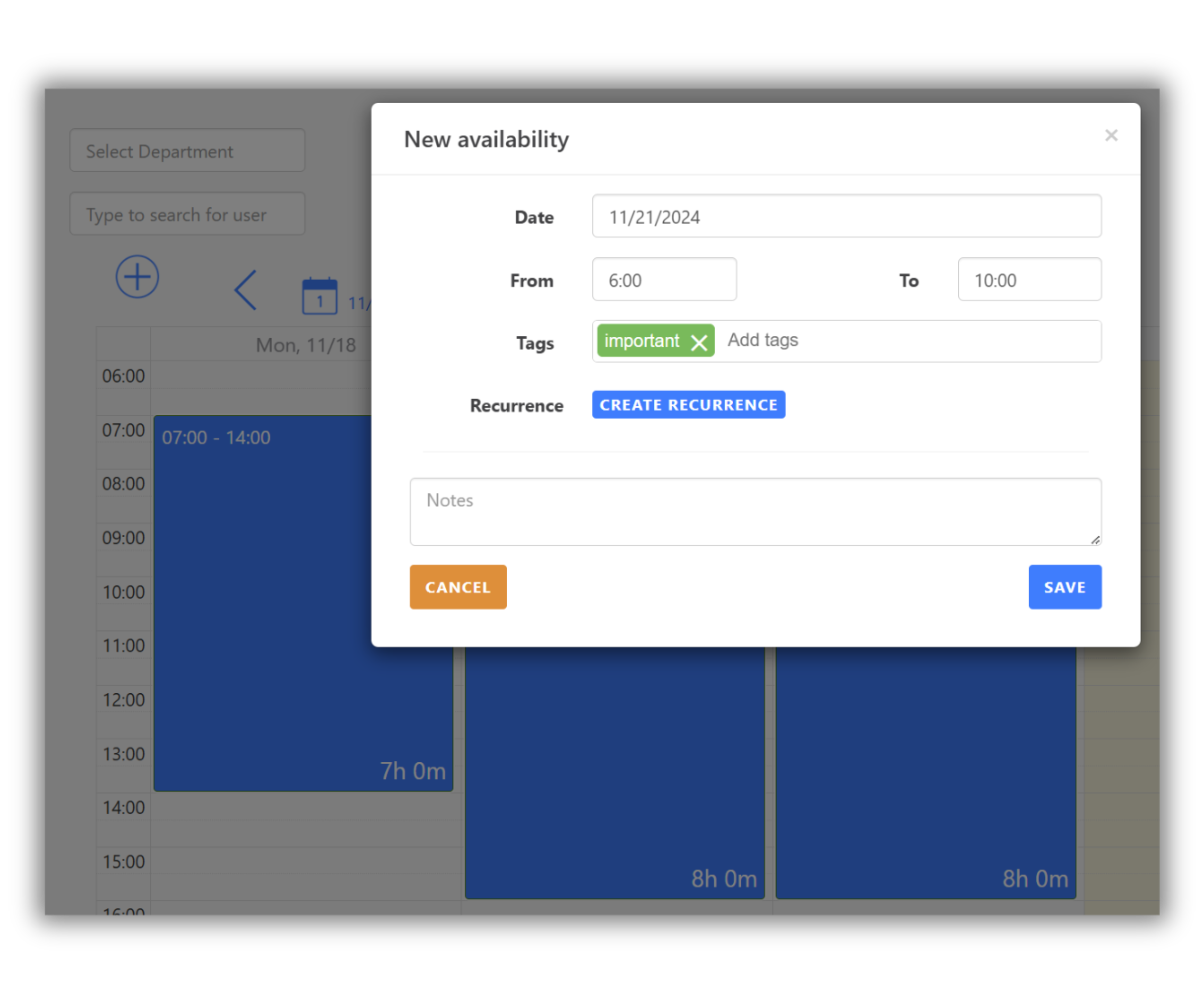 In TimeTrack, employees can enter and manage their availability for shifts themselves. This feature allows for better planning while taking into account the individual needs and preferences of employees.