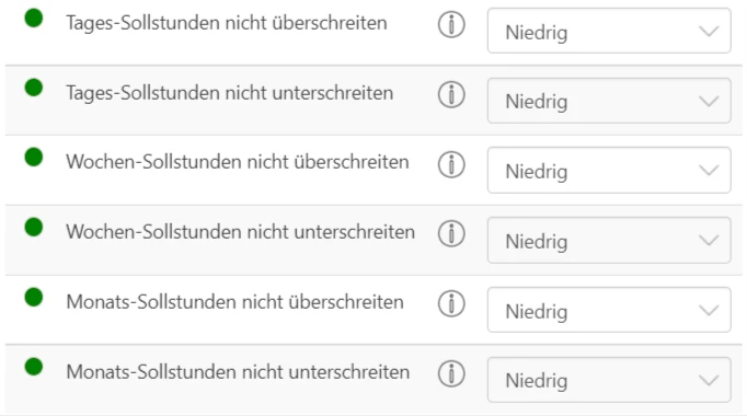 Mittels diesem Kriterium geben Sie an, wie wichtig es für Sie ist, dass die monatlichen Sollstunden Ihrer Mitarbeiter:innen nicht überschritten werden.