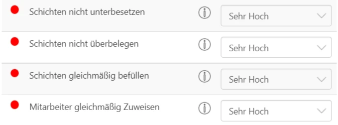 Dieses Kriterium definiert, wie wichtig es für Sie ist, dass Schichten nicht unter der von Ihnen angegebenen Anzahl an Mitarbeitern bzw. Mitarbeiterinnen belegt werden.