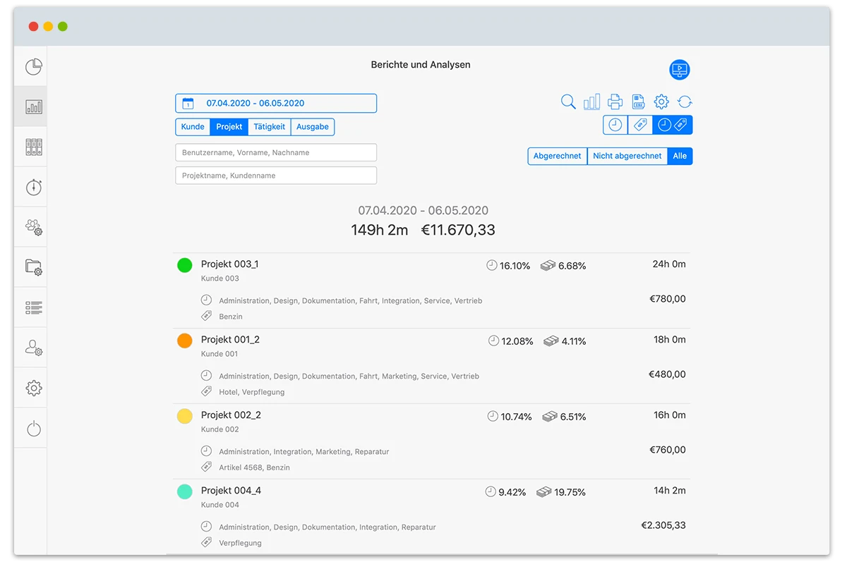 Mithilfe der Soll-Ist-Vergleiche entdecken Sie, welche Projekte effizient und welche ineffizient sind. Zudem verfolgen Sie laufend den Projektgewinn, sodass Sie im Auge behalten, ob zeiteffizient gearbeitet wird und ob zu Budgetüberschreitung kommt. Besonders praktisch ist die Projektverfolgung beim Multi-Projektcontrolling, wo Sie Ihr Know-How bestens unterstützt.