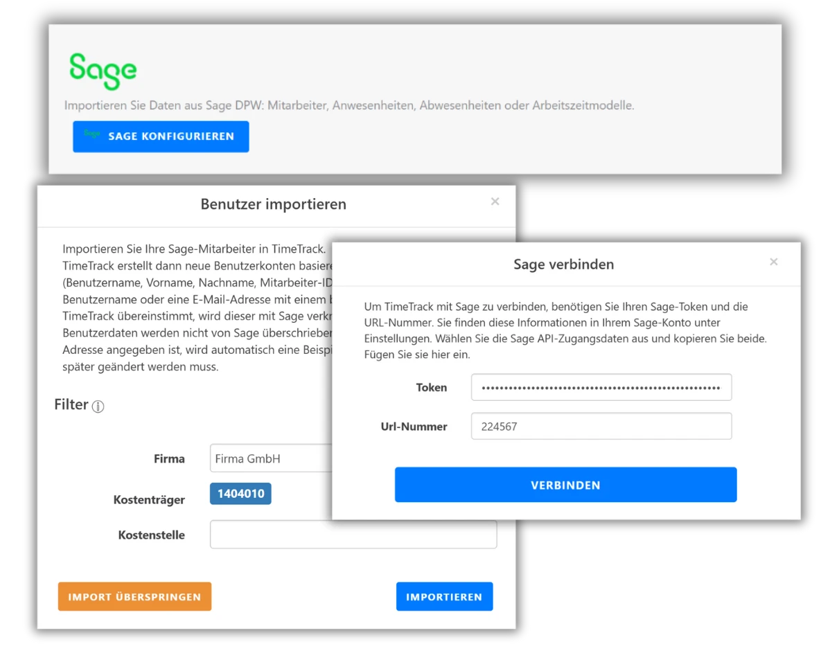 *Das führende System bei der Synchronisation ist Sage. TimeTrack spiegelt alle An- und Abwesenheiten, die in Sage hinterlegt sind.