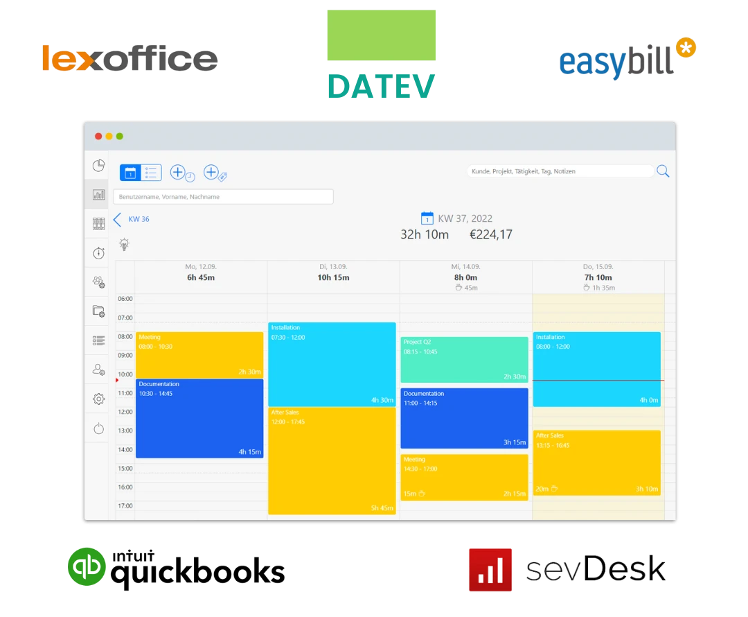 Verbinden Sie TimeTrack mit den Systemen, die Sie bereits verwenden! Um den Aufwand der Datenübertragung in ein neues System zu vermeiden, bieten wir Koppelungen zu lexoffice, sevDesk, easybill, quickbooks, DATEV und BMD. Erfahren Sie mehr dazu unter unseren Schnittstellen.