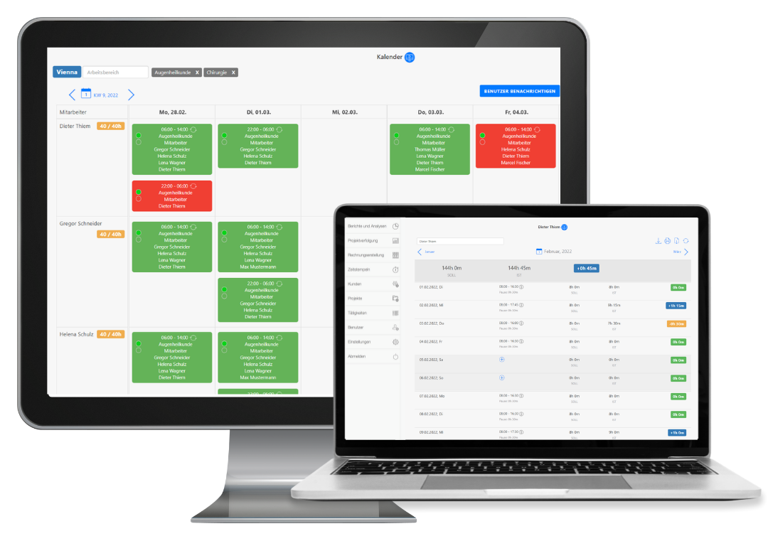 Mit TimeTrack ist die Dienstplanung einfacher und übersichtlicher denn je! Mit unseren Modulen zur Dienstplanung können große Unternehmen Schichten unter Berücksichtigung der Verfügbarkeiten und Skills Ihrer Mitarbeiter erstellen. Die Schichten können außerdem auch nach Standorten und Arbeitsbereichen erstellt werden. Somit sparen sich Unternehmen viel Zeit und sorgen für eine klare Übersicht der zu verrichtenden Dienste.